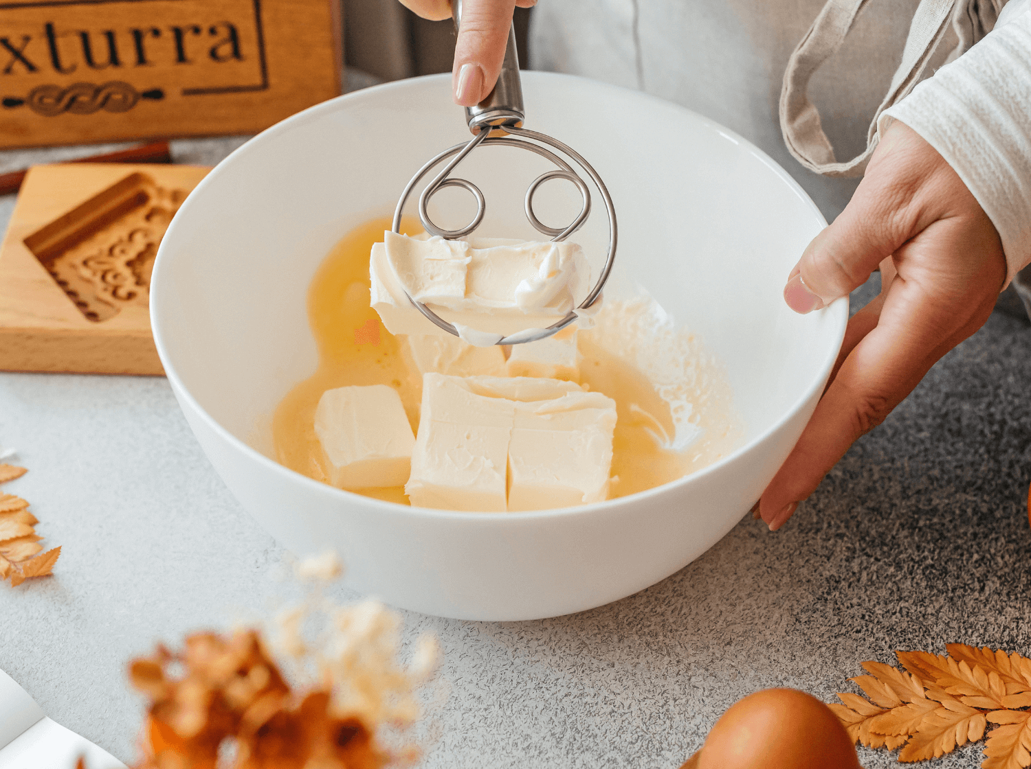 Добавьте размягченное сливочное масло и тщательно перемешайте.