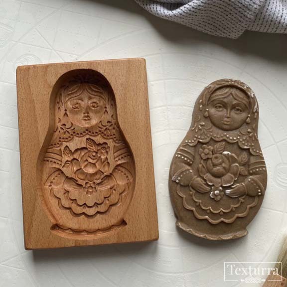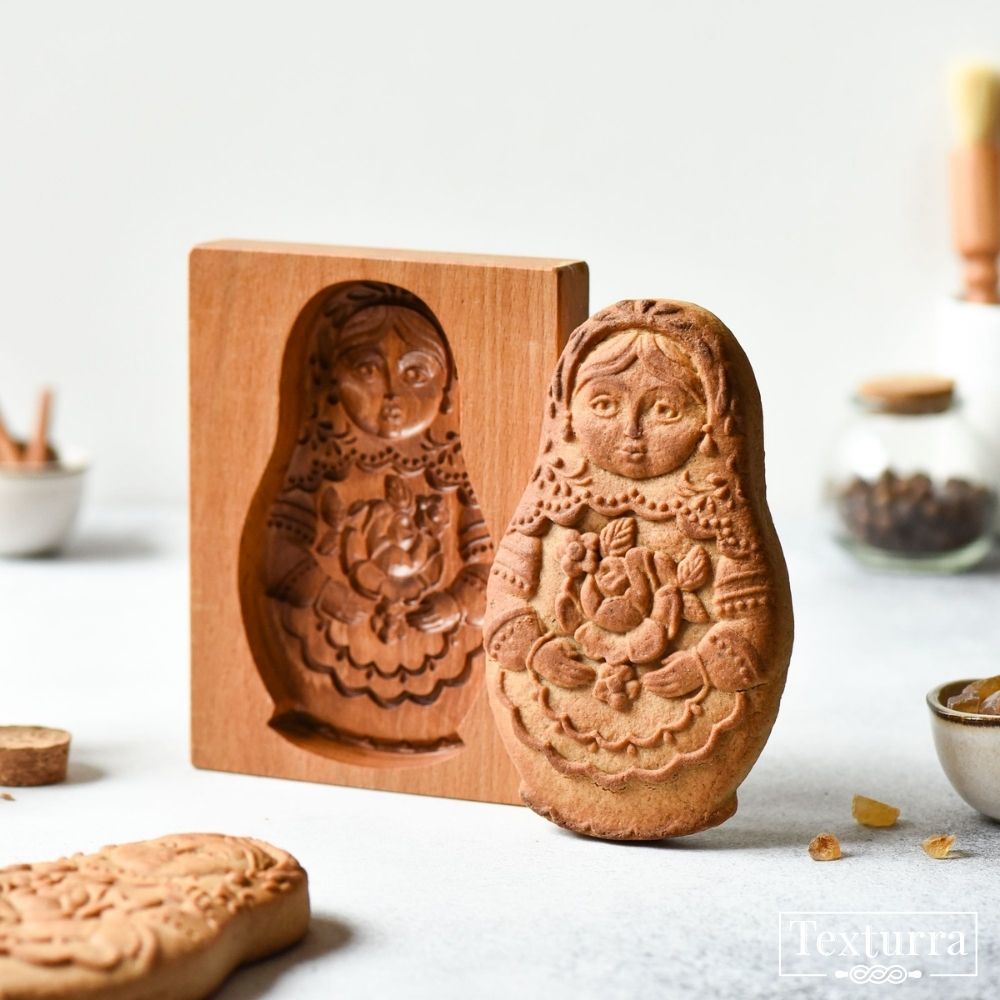 Пряничная форма Матрёшка Настенька подходит для приготовления домашних пряников с начинкой и без начинки.