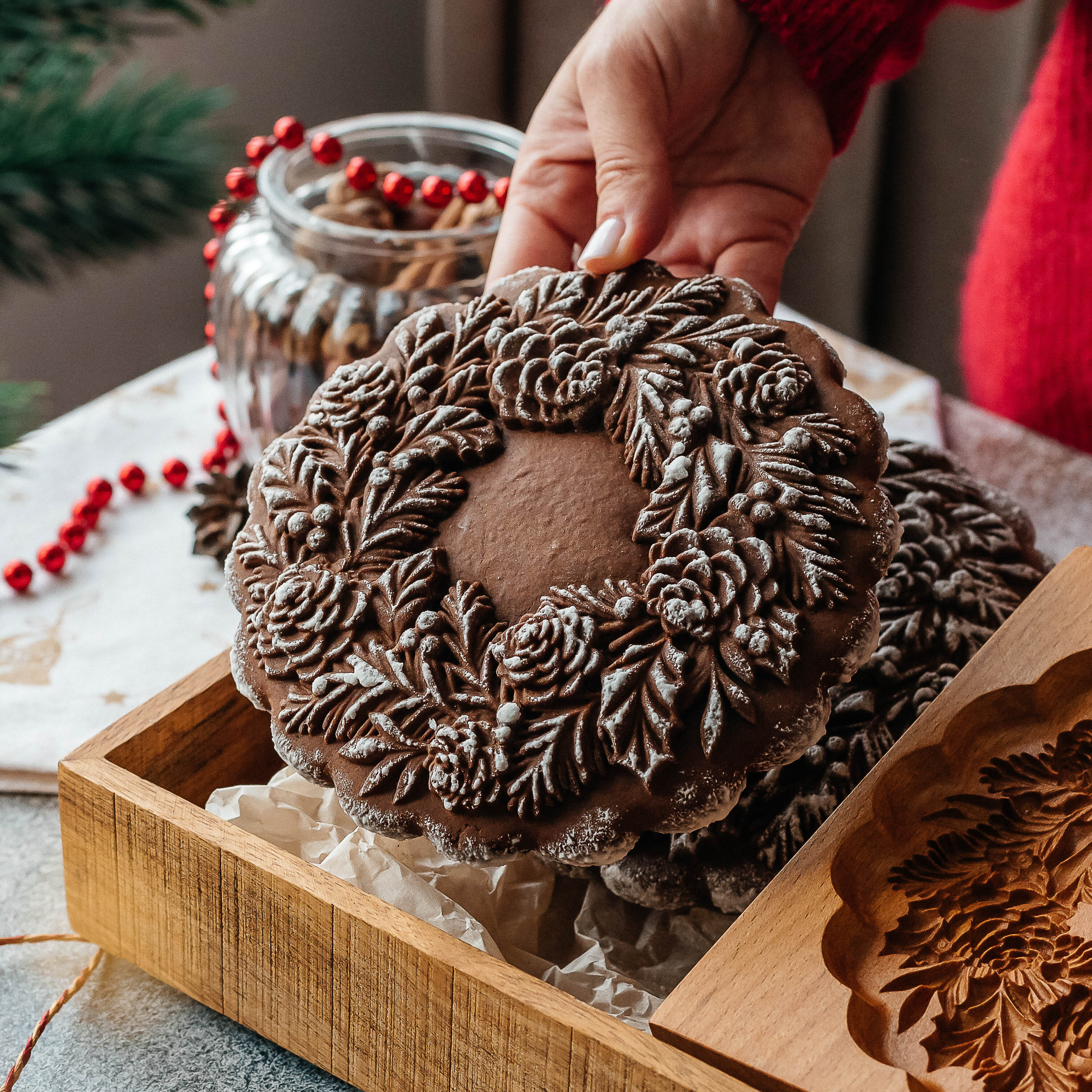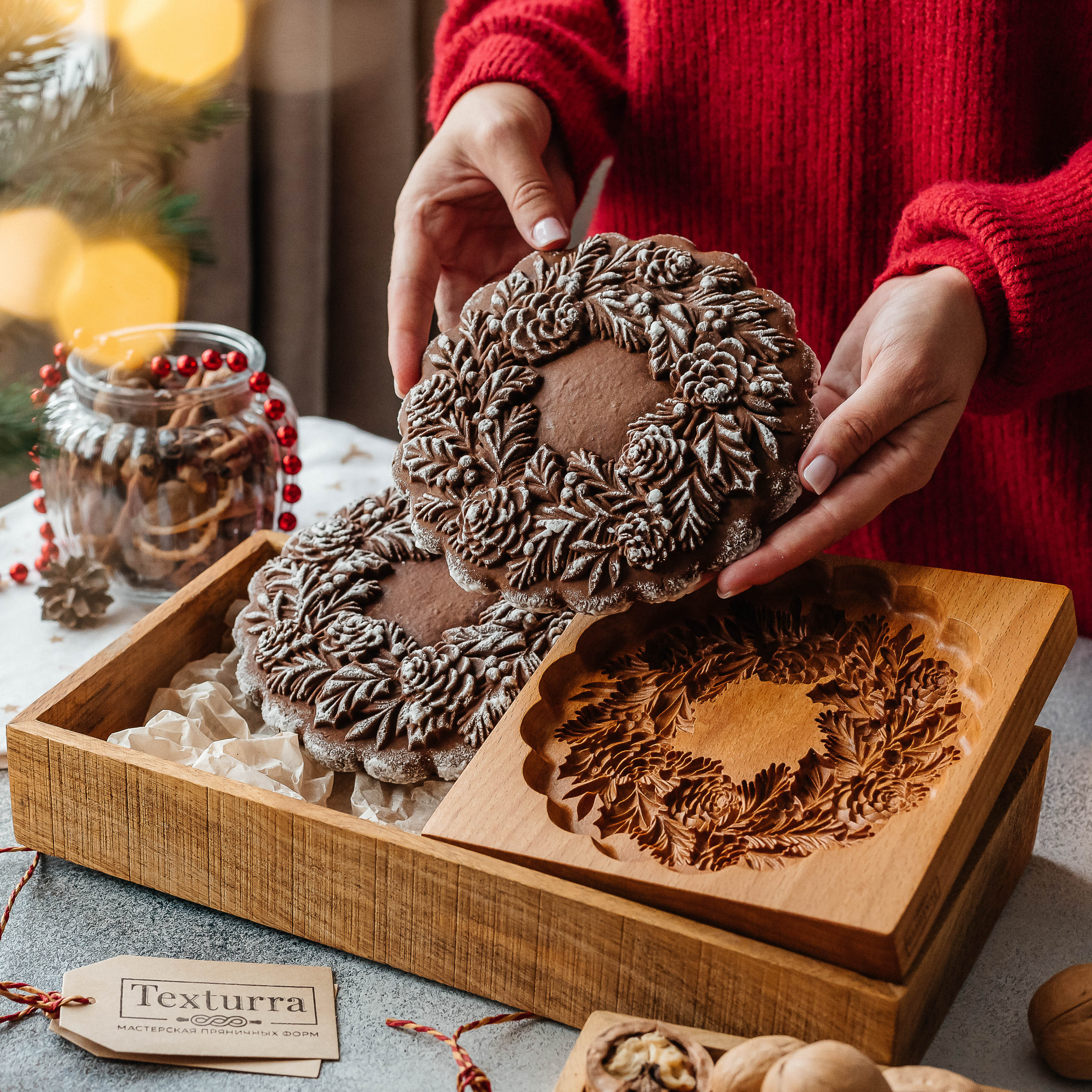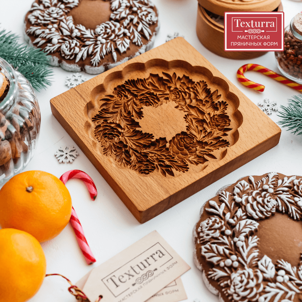 Форма Венок с шишками подходит для приготовления домашних пряников с начинкой и без начинки.